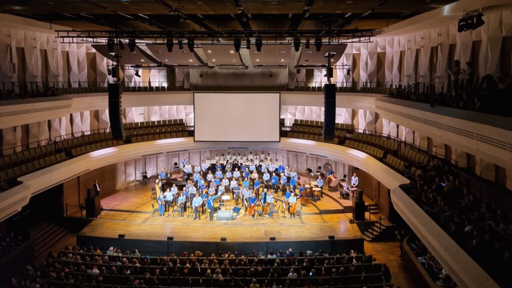 24 november ’25: afgelopen vrijdag een fijn schoolconcert gegeven! We verzorgen elk jaar voor een andere basisschool een aansprekend en educatief programma. Kinderen uit alle wijken van Den Haag laten we kennismaken met een orkest en de instrumenten daarin. Dit was alvast een leuke en zeer geslaagde voorproef van ‘Snowman meets Frozen’ op 28 december in de grote zaal van Amare!