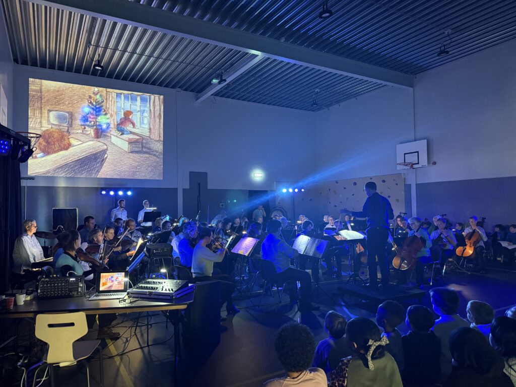 Op 21 november was het thema ‘winter’, met het verhaal van Snowman, naar het boek van Raymond Briggs. Een jongetje maakt een sneeuwpop die tot leven komt, en samen beleven ze allerlei avonturen in en om huis. De muziek is begeleiding van een prachtige film en we werken samen met het Haags Matrozenkoor. Op zondagmiddag 28 december kun je naar het familieconcert in Amare om alles mee te beleven! Zie de concertagenda